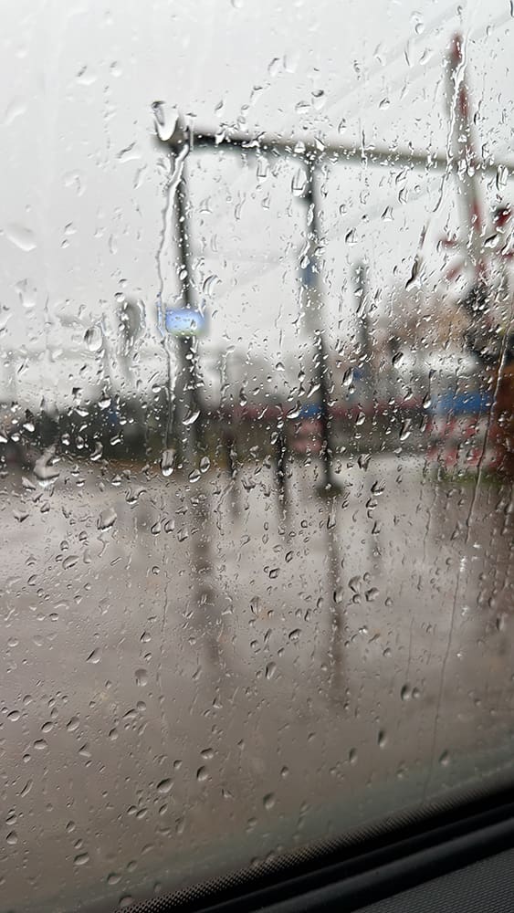 Daar staan we weer! Lekker binnen en droog. Dat is wel fijn.