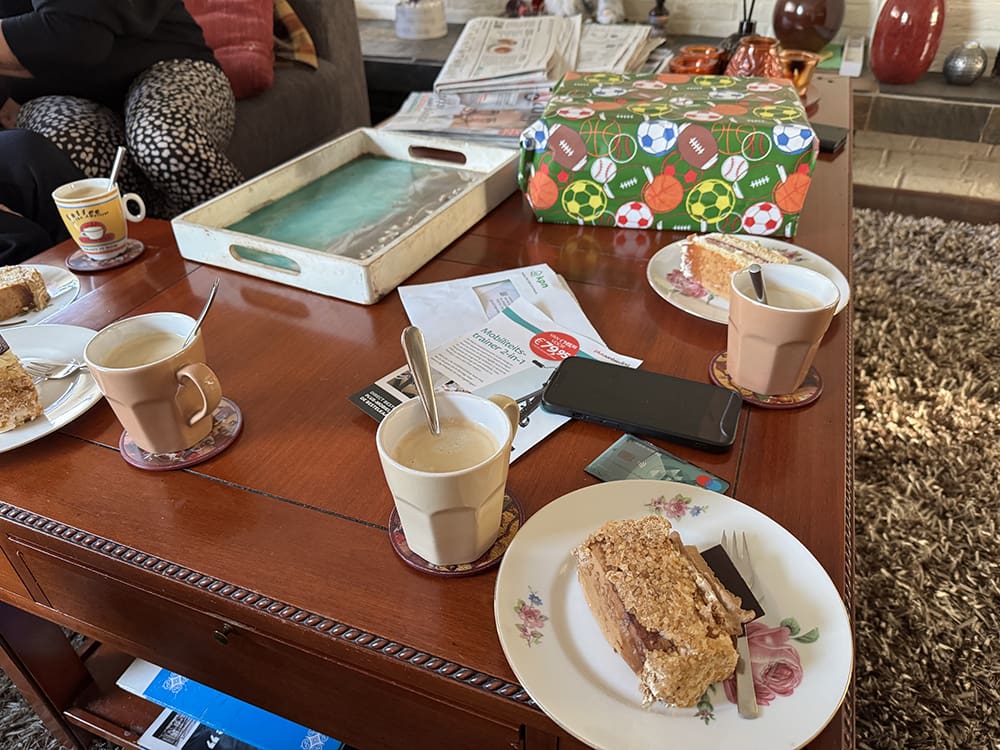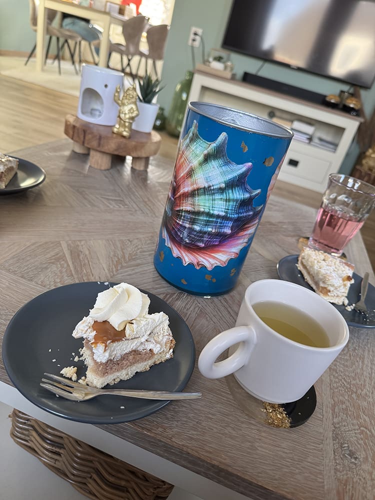 Lekker taart eten en veel lachen. Het was even een drukte maar wel gezellig.