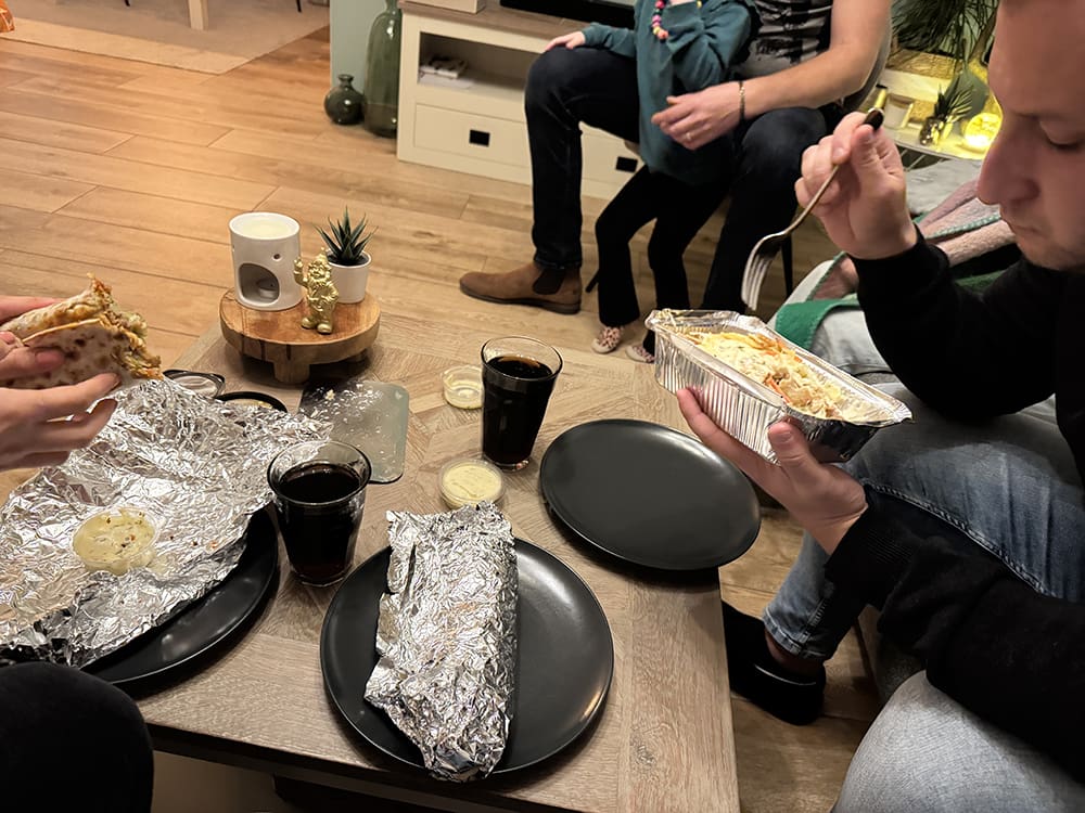 Ik had nog best lekker verkocht. We haalden wat lekkers te eten bij Danielle en Remco en zo kon ik even bijkomen.
