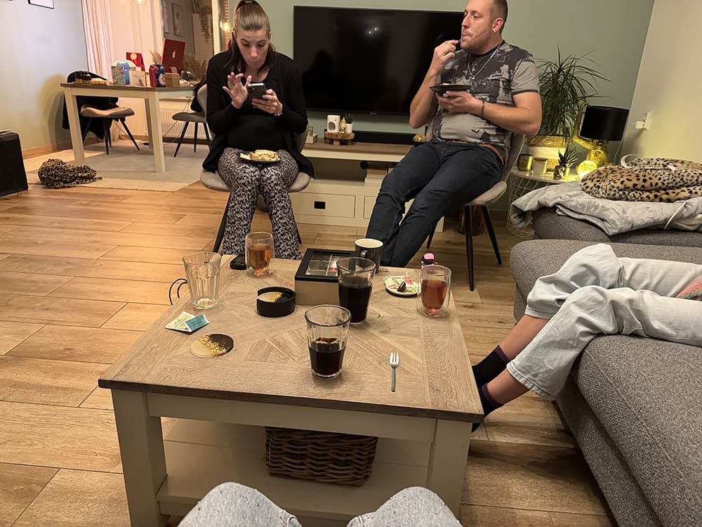 Een taartje en daarna kwamen er nog meer bezoek, vrienden, schoonmoeders, schoonzusje en aanhang.