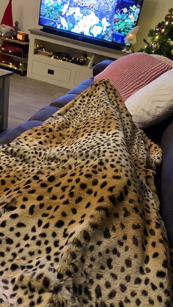 Na het eten met mijn nieuwe dekentje op de bank. Samen met Thijs keek ik 1 tegen 50.