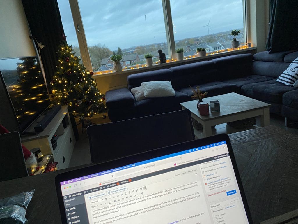 Het wordt steeds eerder donker. De kerstboom kan al snel aan. Gezellig!