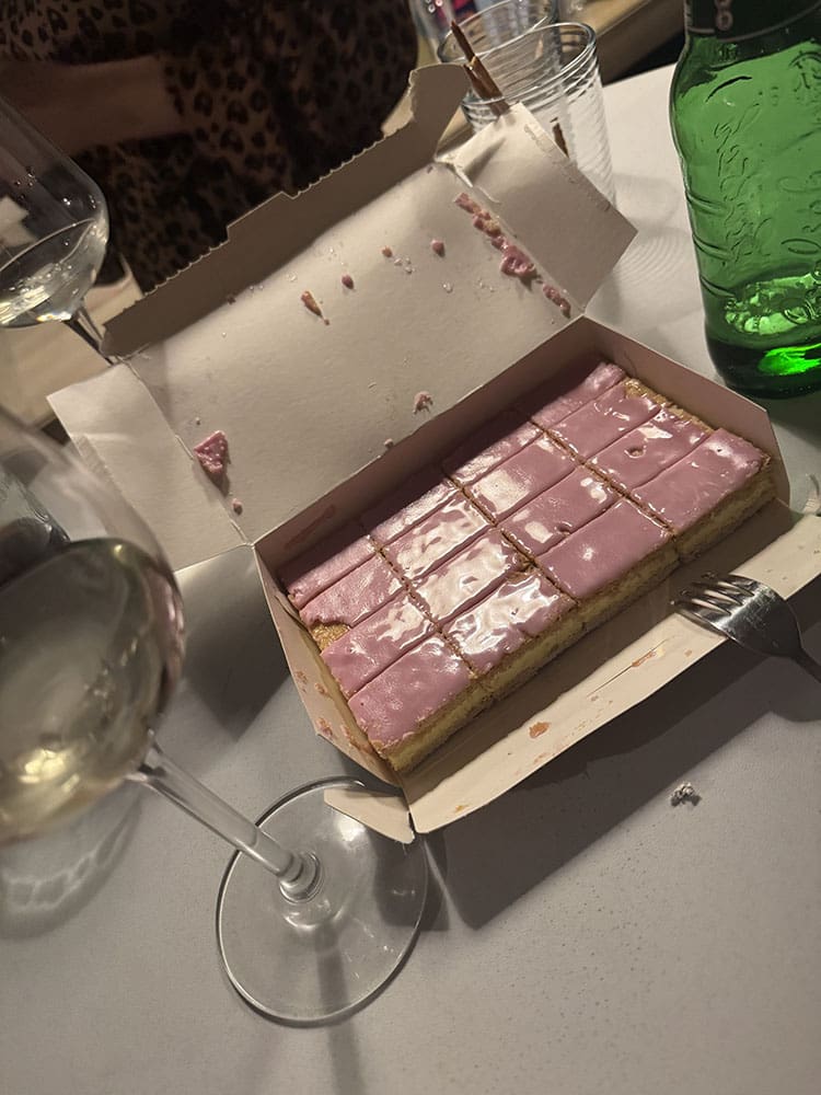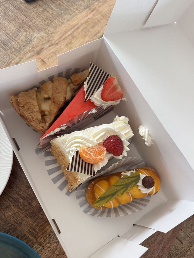 Ik had taart mee en daar werd ze weer vrolijk van. Soms moet je gewoon het leven vieren zeggen we dan.