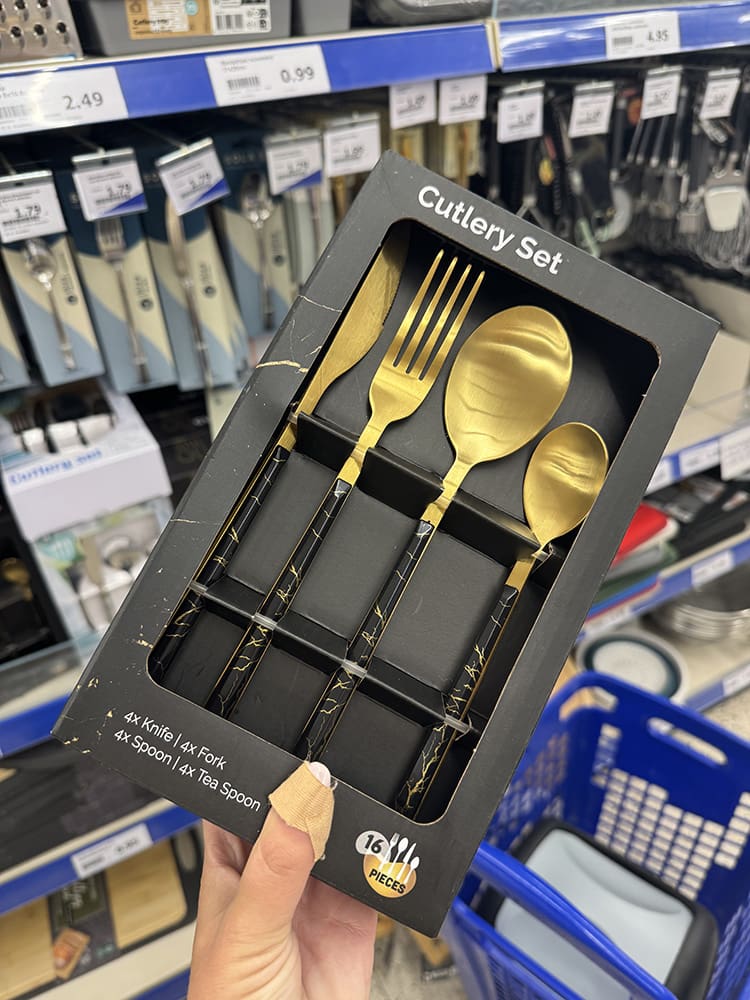 Voor een video haalde ik bij de Action deze bestekset. Kijk hoe mooi!