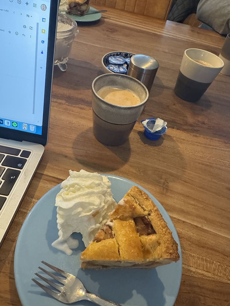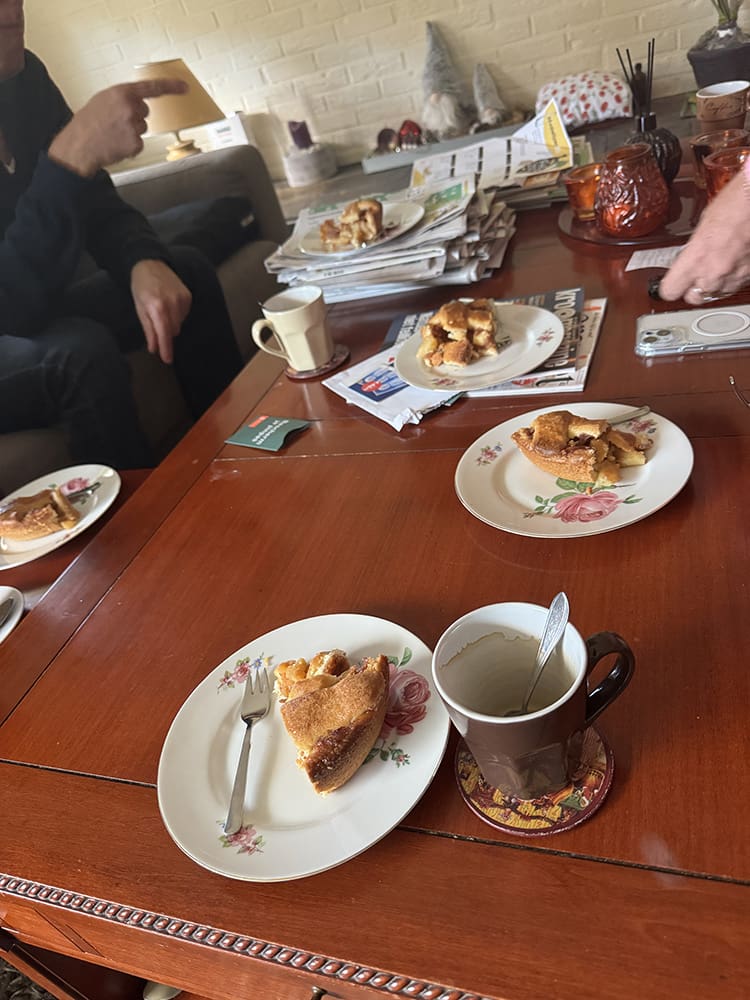 Dinsdag (21 oktober). We hadden weer een overleg voor Tante Janny. Dit keer bij Gerjan en hij had lekker appelgebak.