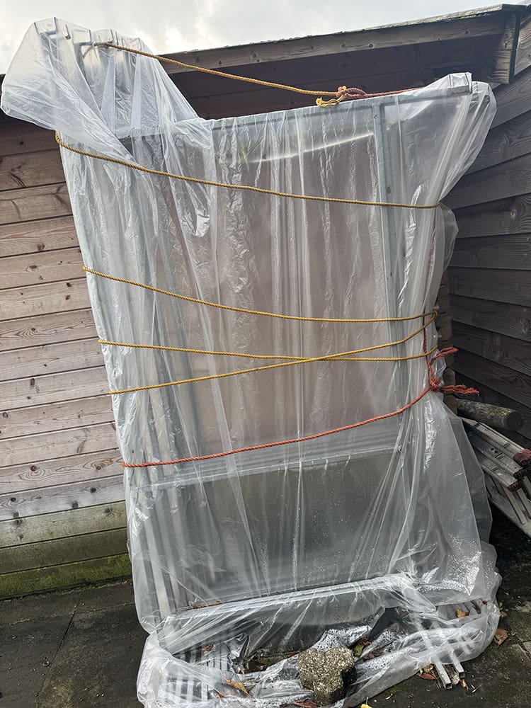 Daarna ging ik naar mijn ouders. Het was nu nog mooi weer en dan kon ik twee marktkraampjes opzetten. Deze moeten eerst uit dit gevaarte, haha.