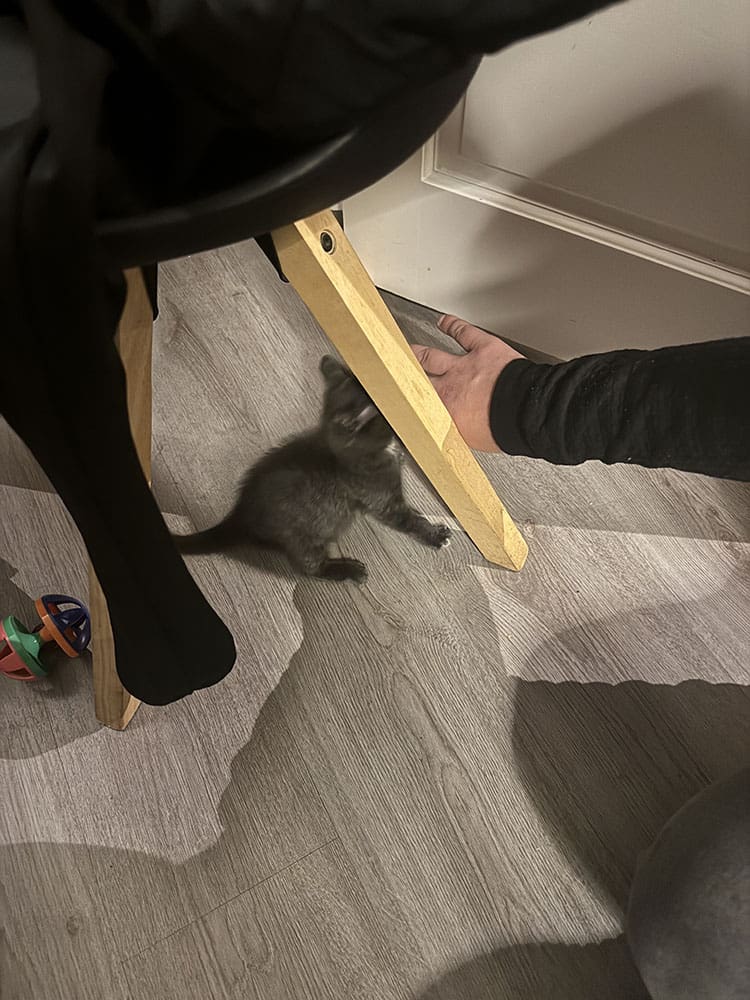 In huis hebben ze een nieuw klein poesje. Thijs ging met de poes van Remco spelen. Lol!