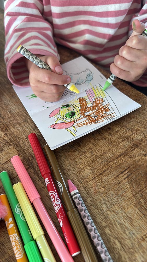 Kleuren en kletsen. De tijd gaat altijd zo snel als ik daar ben. Een goed teken!