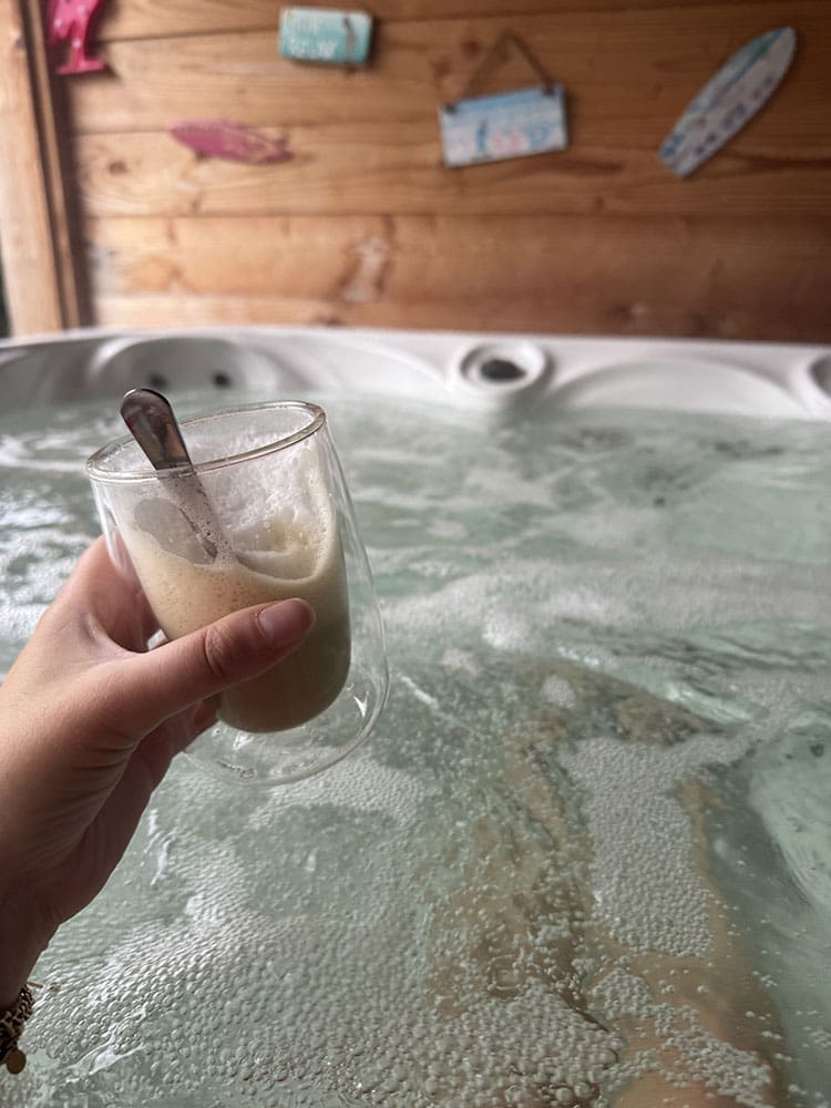 Ik had het zoooo koud. Opwarmen in de jacuzzi.