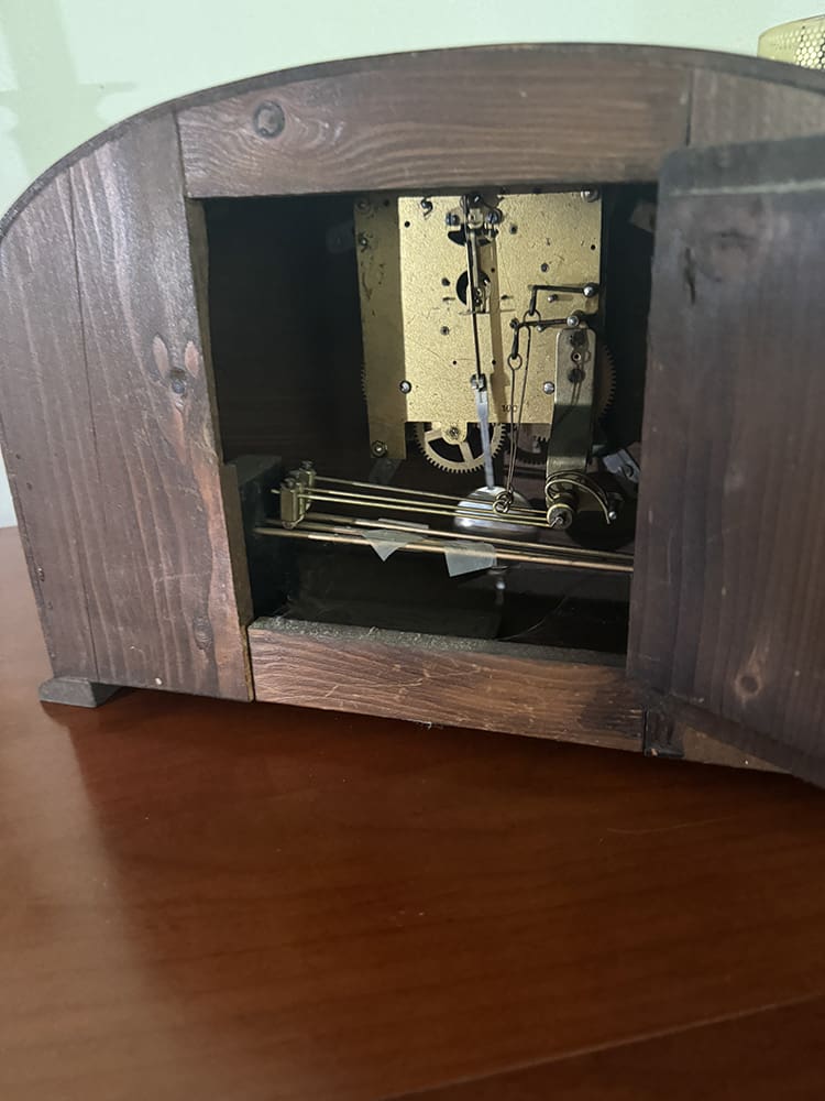 En mijn oom en ik hebben de binnenkant van deze oude klok eens bekeken.