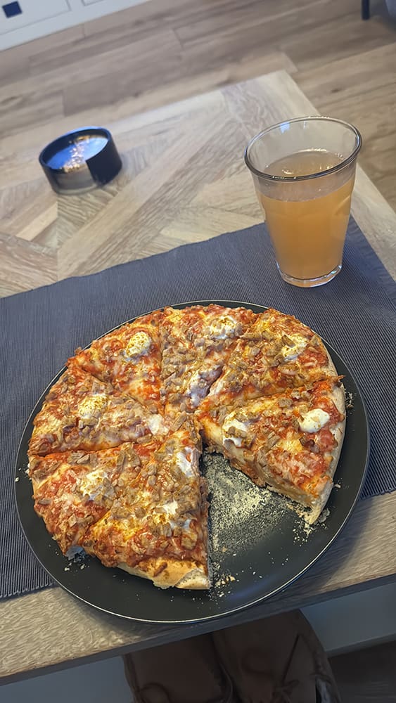 Thijs had een etentje dus ik at lekker pizza.