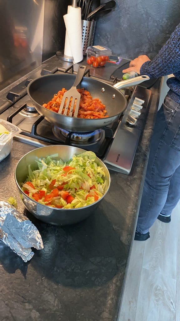 Ik lag daarna op de bank en keek wat Youtube filmpjes en Thijs ging eten maken. Shoarma en een salade. Lekker!