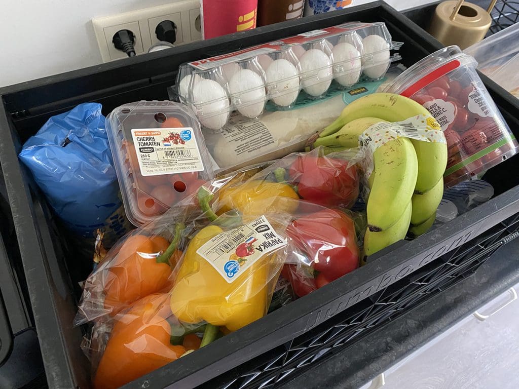 Zaterdag (1 mei). Een ochtend waarin ik de was deed en wat schoonmaakte. Onze boodschappen kwamen.
