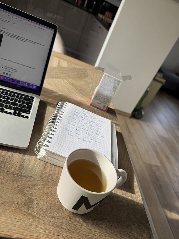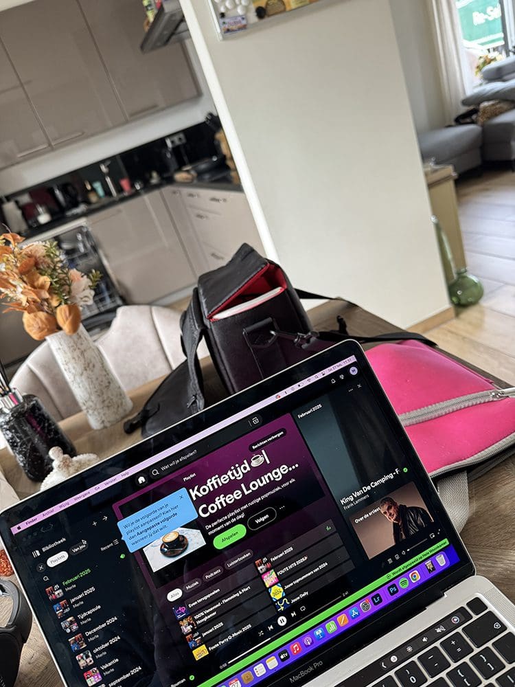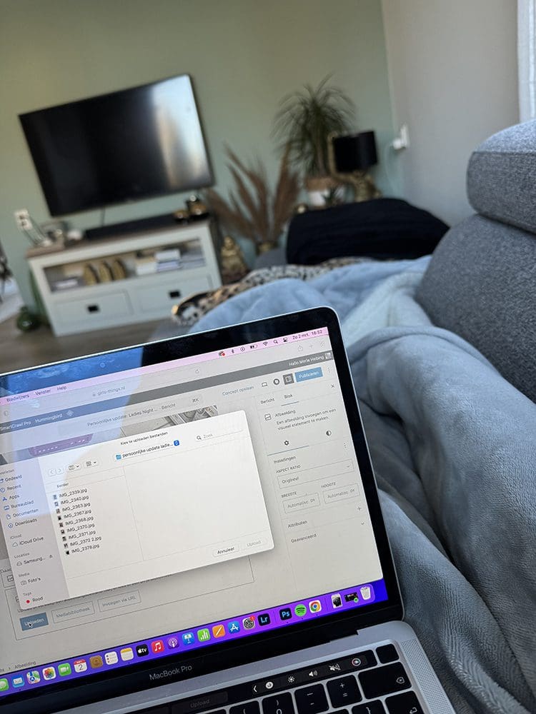 Donderdag (27 februari). Ik heb gesport en daarna was ik voor de webshop bezig. Nieuwe producten online zetten. Met een gezellig muziekje.