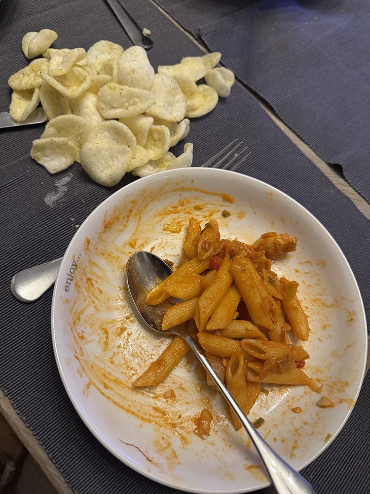 Zelfs het eten werd gefilmd, haha. Thijs had heerlijke pasta gemaakt met Heinz pastasaus.