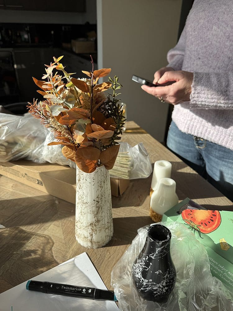 En we hebben nieuwe bloemen om in onze vaasjes te doen. Hoe leuk staat dit?!
