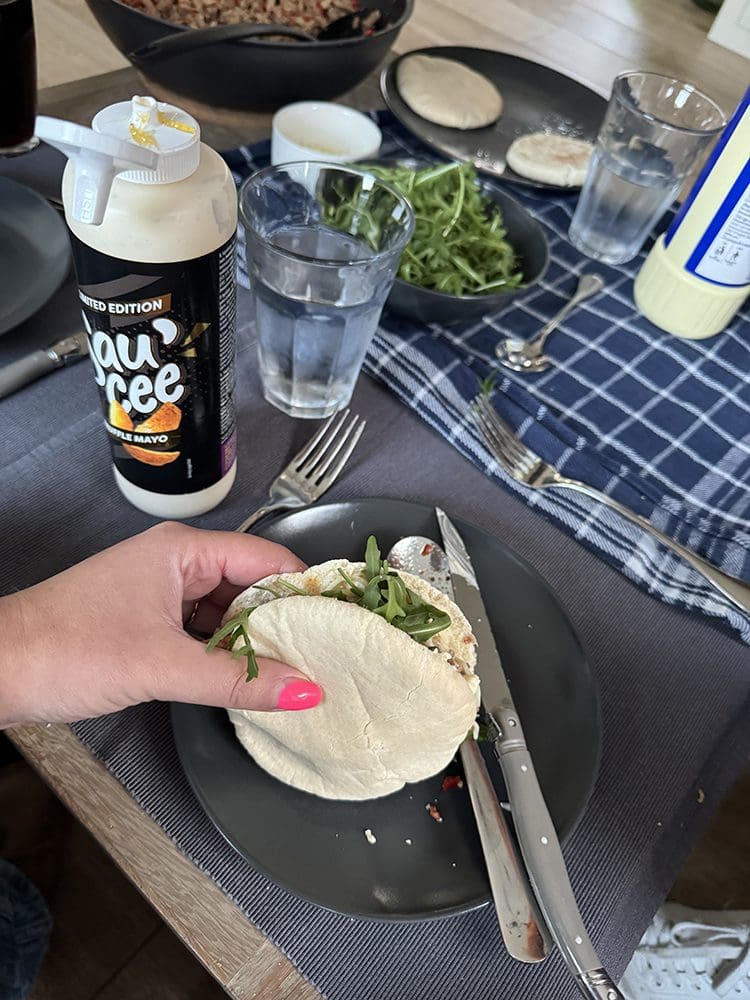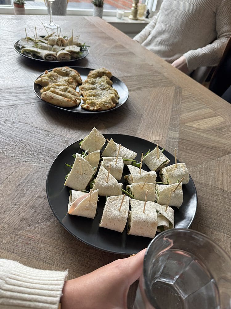 Daarna kwamen Jelmer en Lisa bij ons lunchen. We hebben wraps gemaakt.
