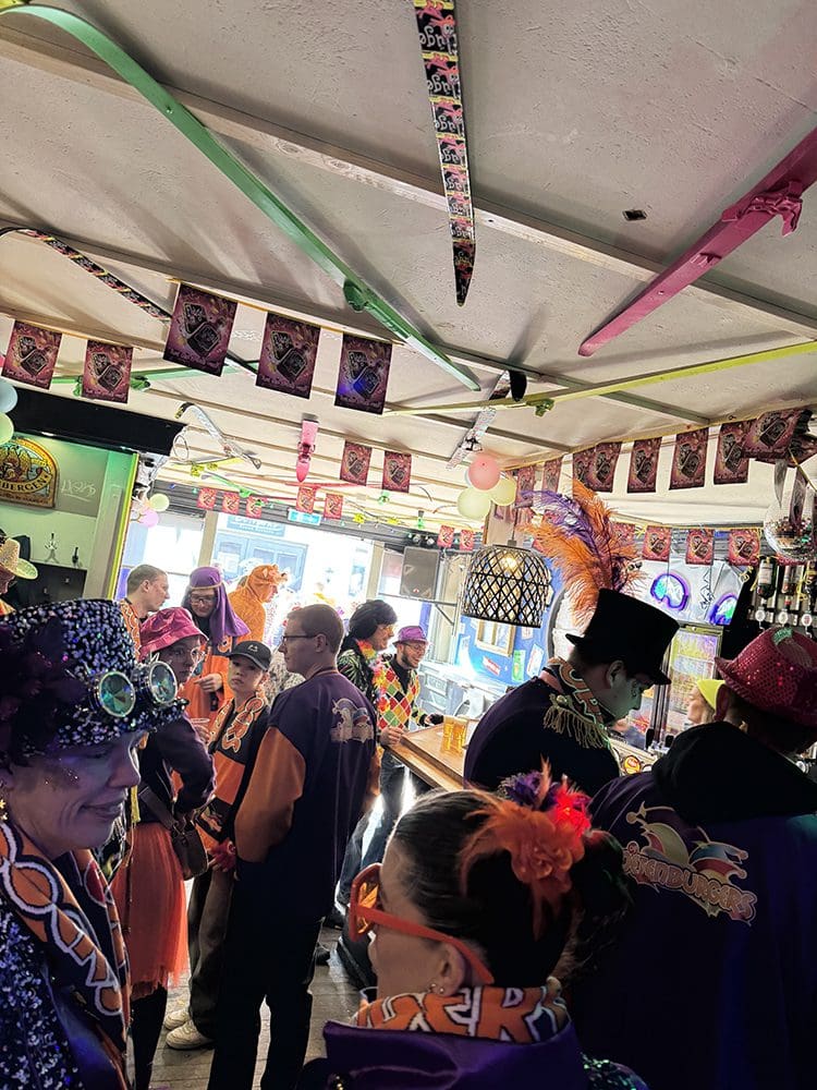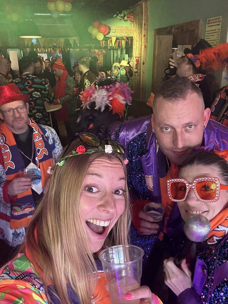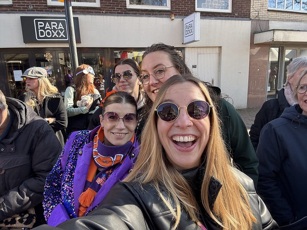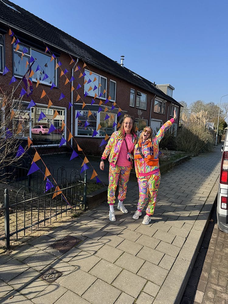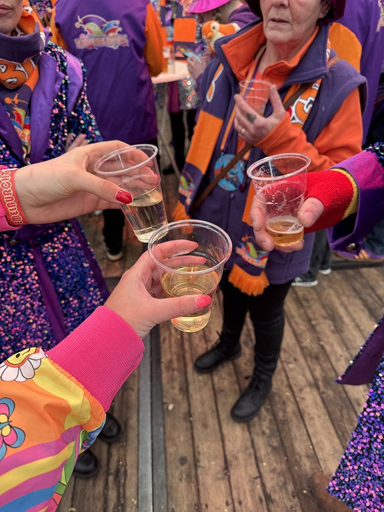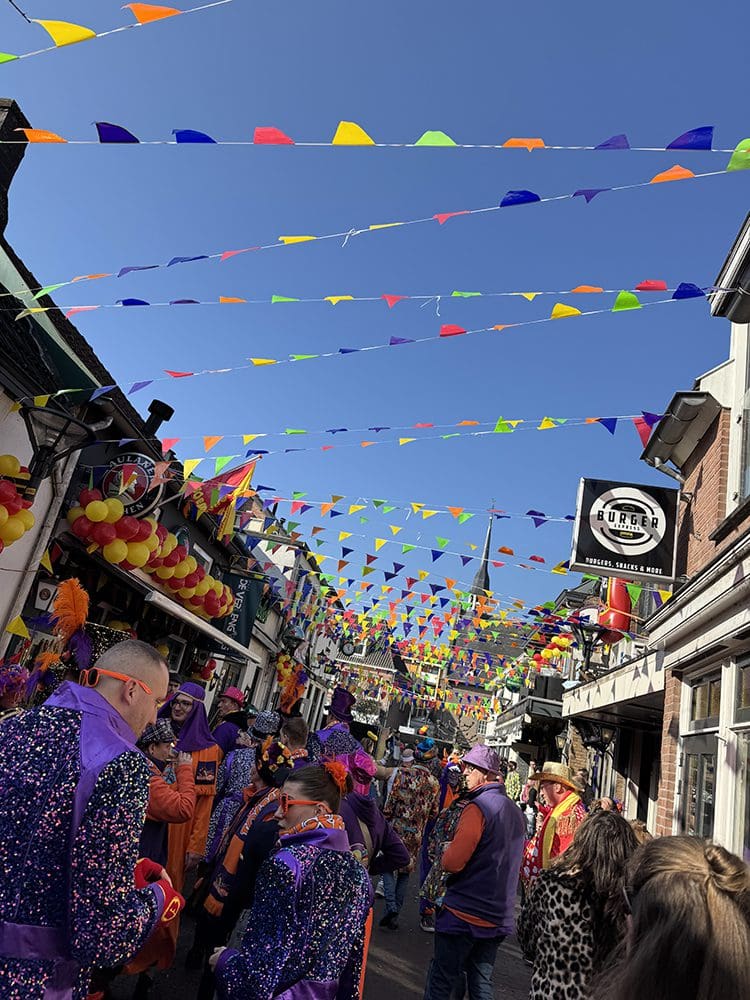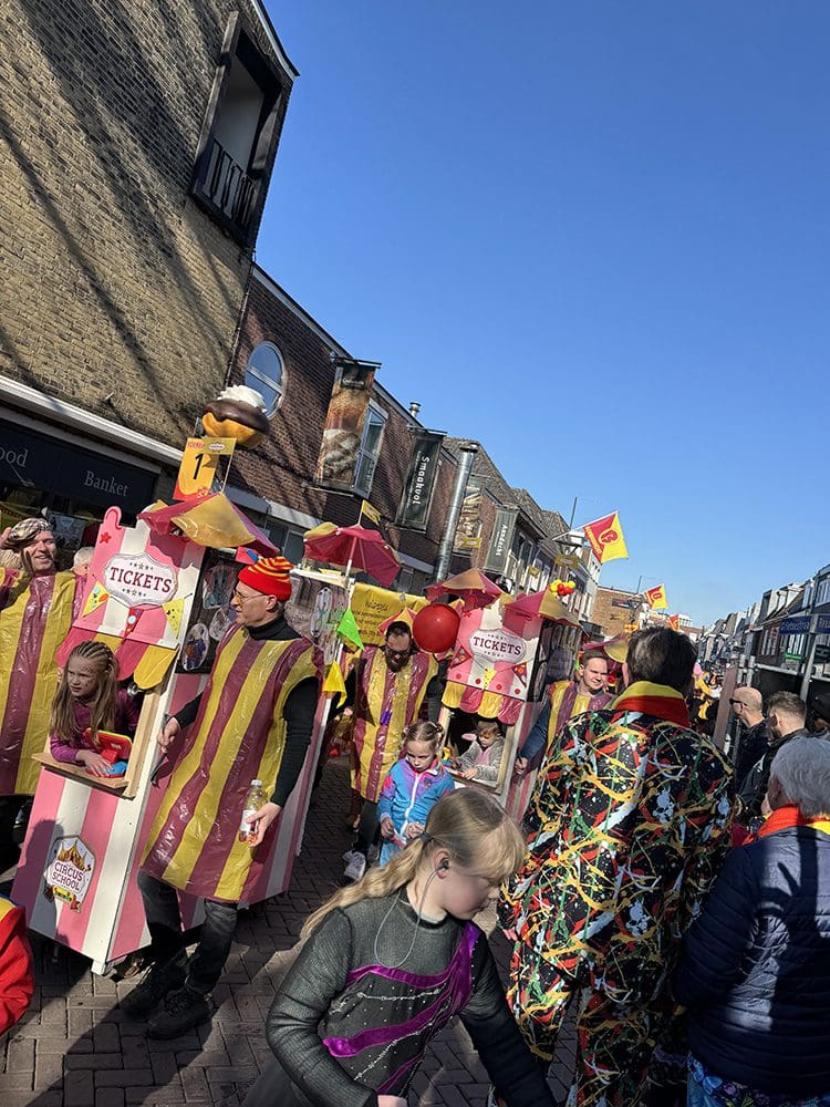 Een en al vrolijkheid en gezelligheid. We zijn met de vereniging van Danielle en Remco meegelopen.