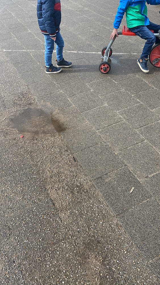 Dinsdag (14 maart). Ik bleef iets langer op school om een pauze van een collega over te nemen. Ik liep buiten bij de kleuters. Dan kon zij even met pauze en een broodje eten.