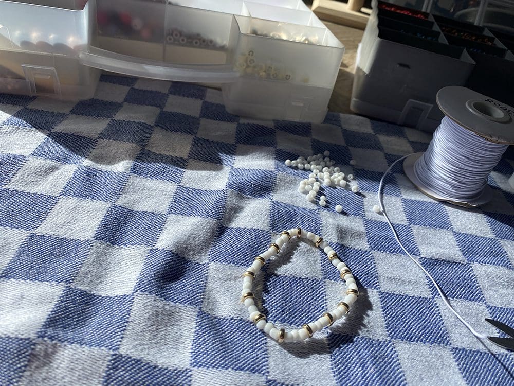 Ik ging daarna thuis aan de slag met armbandjes. Ik maakte er best veel.