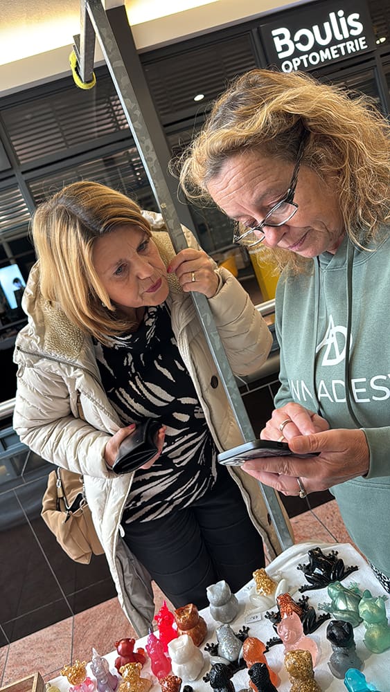 Een andere kraamhouder had wat leuks gezien bij ons. Ik kwam bij haar om te pinnen haha. Wandelende epoxy service.
