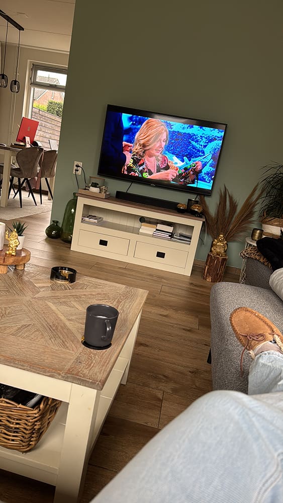Lekker chillen op de bank en kletsen. We schelen meer dan 15 jaar in leeftijd maar daar is niks van te merken.