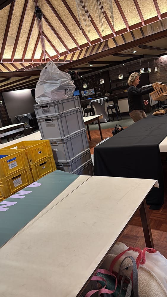 Rond 10 uur konden we opruimen. Dat was allemaal een beetje onduidelijk omdat het tot 11 uur duurde. We snapten er niks van. Maar we hebben maar rustig aan alles opgeruimd en gingen als laatste weg, haha. Het was een gezellige en zeer geslaagde avond.