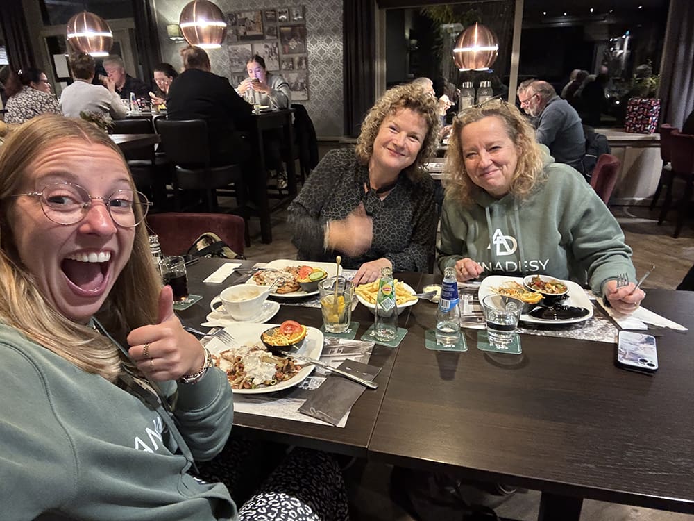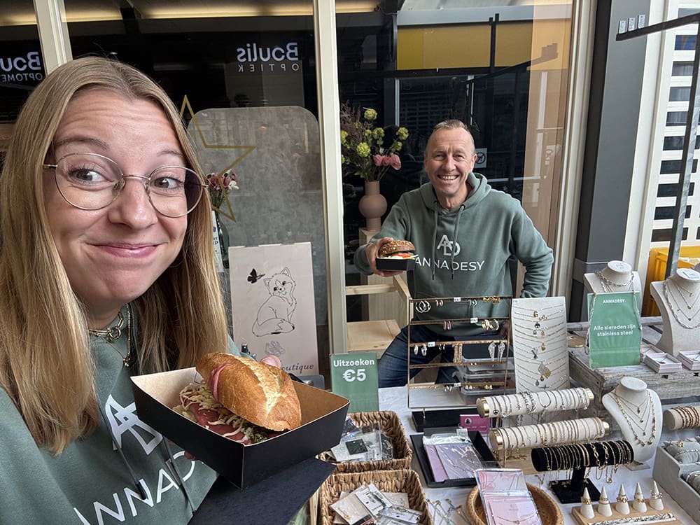 De kramen waren opgebouwd en het was tijd om wat te eten. Er zat een restaurant bij dus daar hebben we heerlijk gegeten samen.