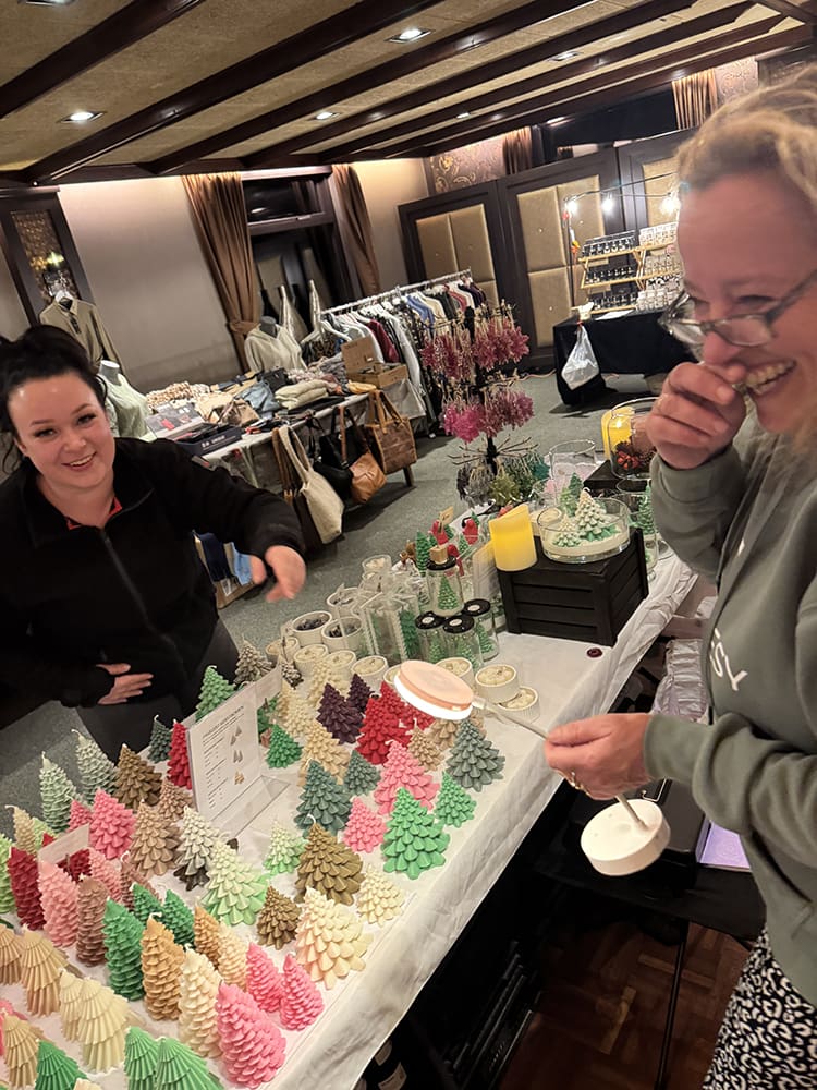Kim van KV Designs stond achter ons. We kennen haar ook goed en hebben er veel mee gelachen zoals je ziet. We shopten er ook nog leuke kaarsen.