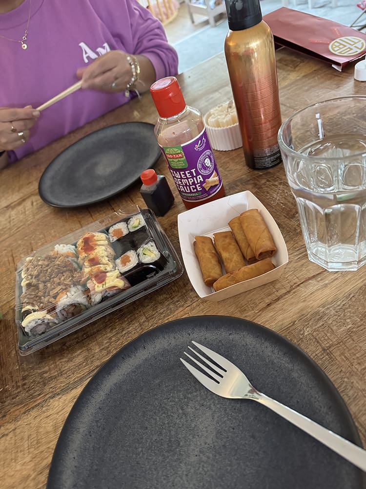 Ik had op de heenweg sushi gehaald en zo hebben we heerlijk geluncht.