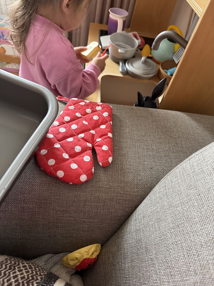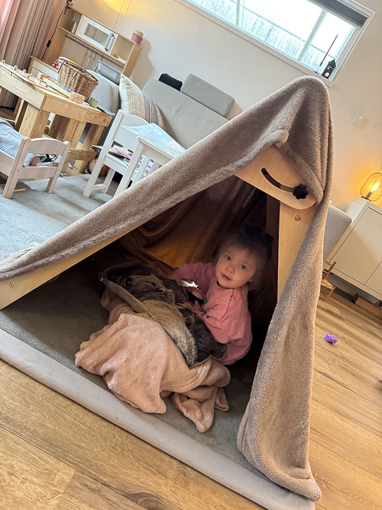 Sylvie werd ook wakker en ging naar beneden. Lekker spelen.