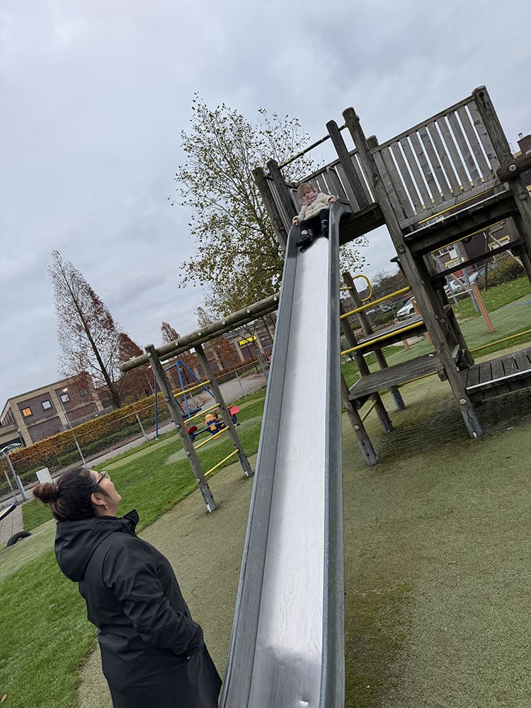 We zijn nog even naar de speeltuin gegaan. Dat kind is ook nergens bang voor, geweldig.