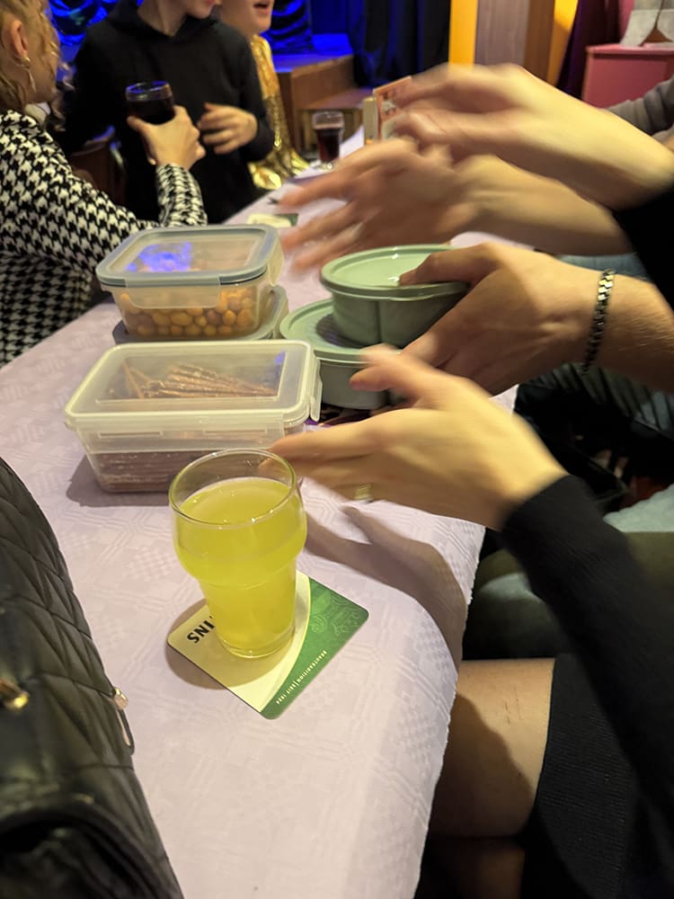 Lekker wat drinken en naar stukjes dans/voorstelling kijken. Ik snapte niet alles.