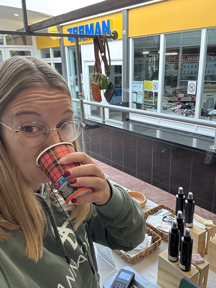 We hadden een dag uitgekozen waarop je niet meer kon reserveren, dus ga je ervan uit dat de winkel bezet is. Zat de winkel dicht… Naja. Wat raar. Op de site vonden we een telefoonnummer van de eigenaar en die heb ik gebeld. Hij ging er achteraan en zou mij terug bellen. Wij hebben ondertussen maar lekker koffie genomen.