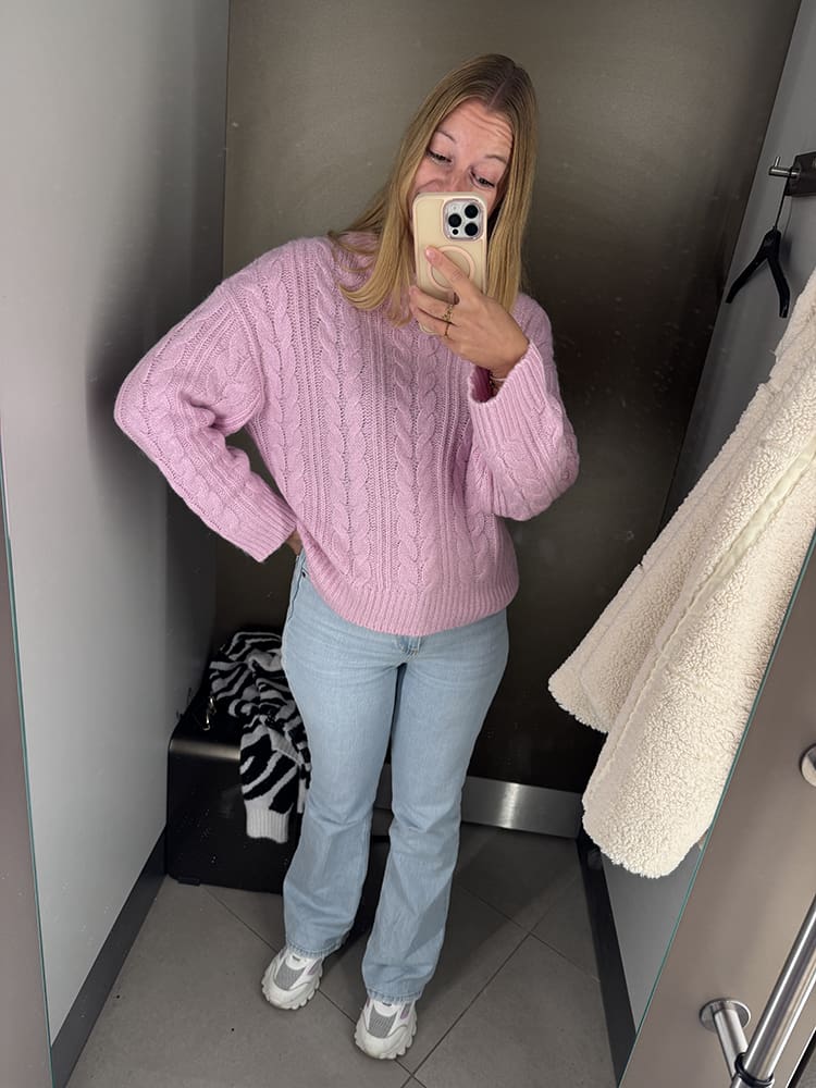 Ik ging naar de Primark voor ondergoed en dat soort dingen. Bij de New Yorker kon ik deze trui niet laten liggen. Zo leuk die kleur roze.