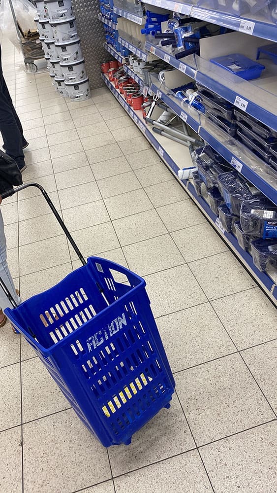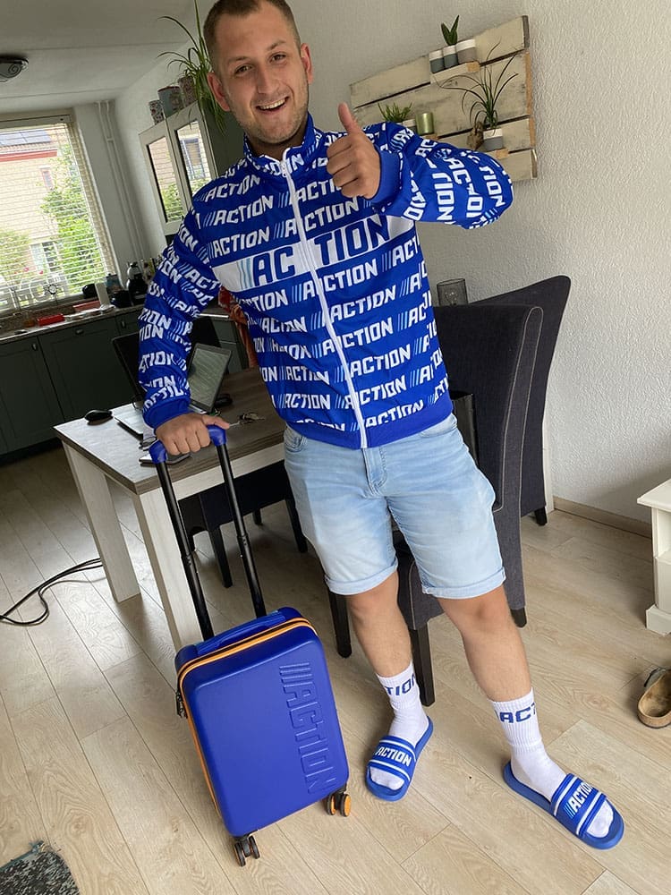Voordat we weg gingen was Thijs nog even langs de Action geweest. Dingen voor de markt halen. Daar hoort dit niet bij hoor…. Maar wat een vent, hilarisch.