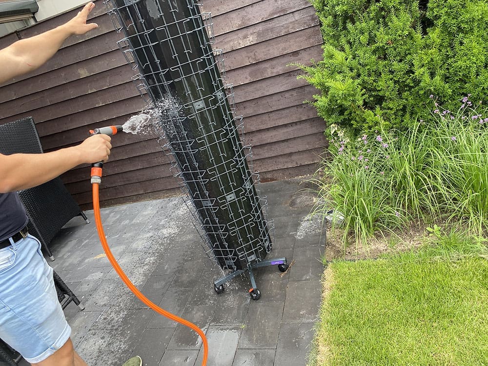 Zondag (26 juni). Ik begon de ochtend met sporten, wat achter de laptop en bezig voor de markt. Onze kaartenstandaard even goed schoonmaken.