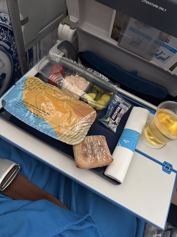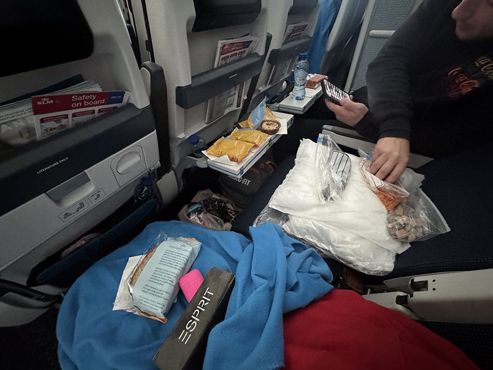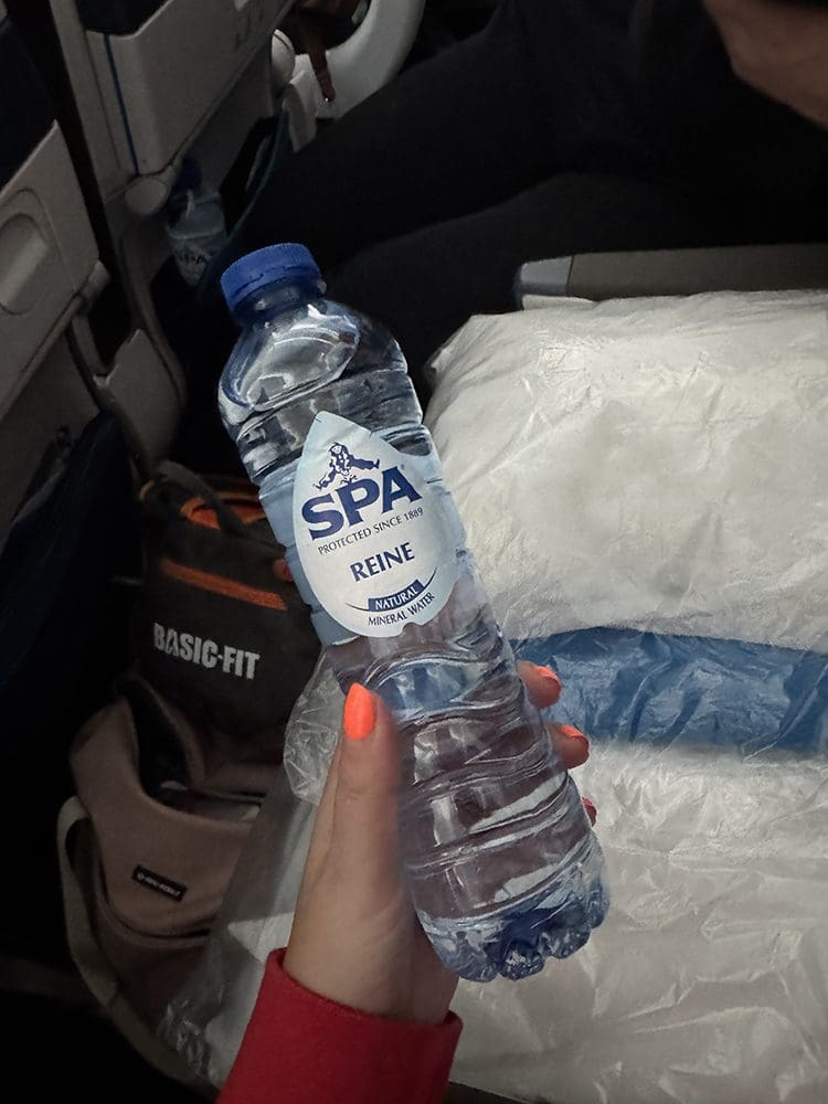 Wat een luxe bij KLM, dekentje, kussentje, water. Love it.