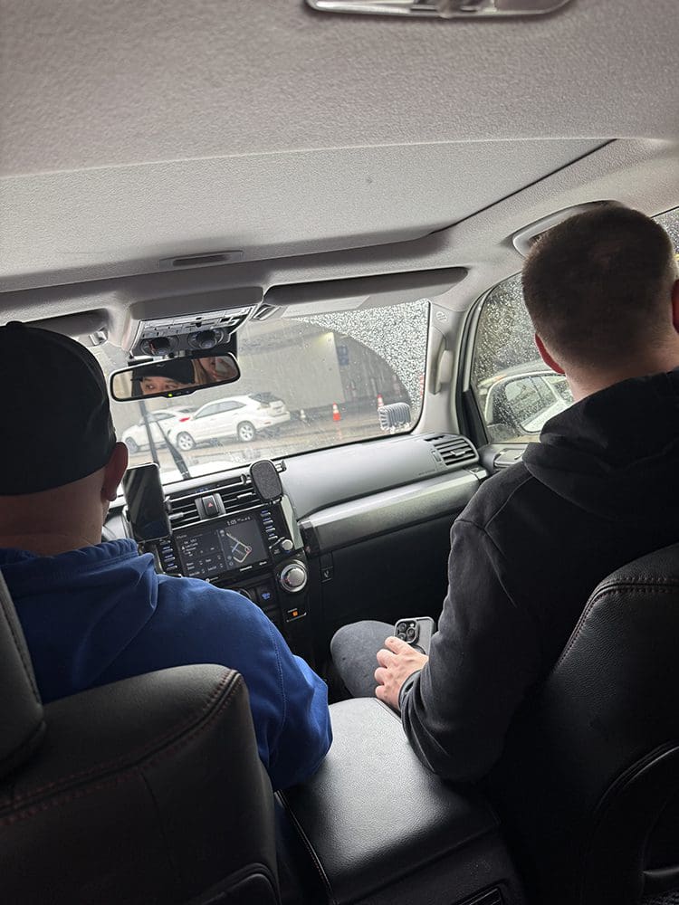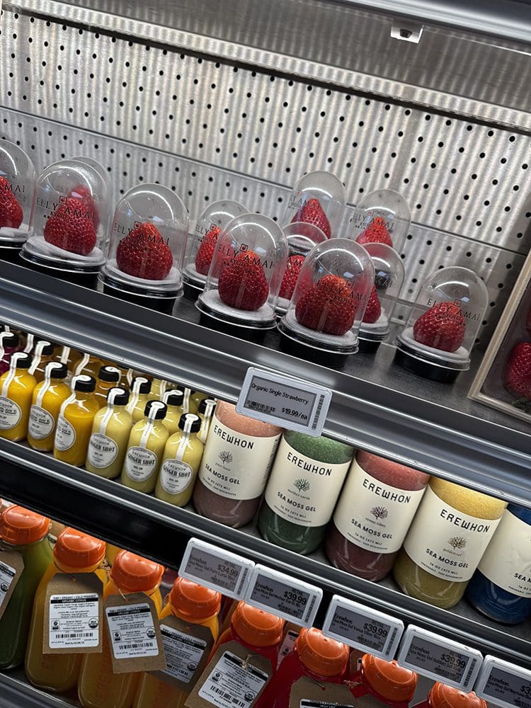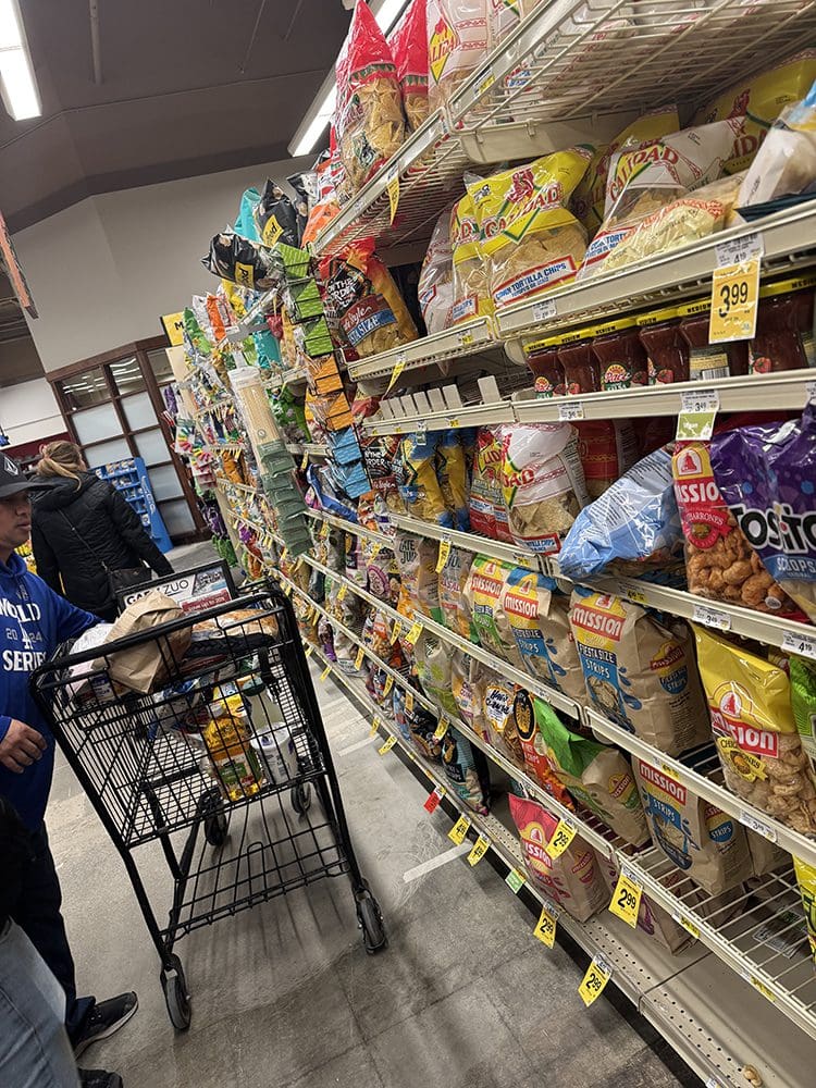 Daarna rijden we door naar Nadia’s werk (de dochter van Joey). Ze werkt bij een hele luxe en dure supermarkt. Allemaal bekende TikTokkers doen hier hun boodschappen.