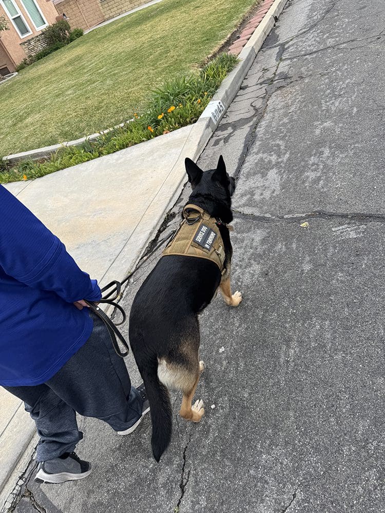 We gaan daarna een klein stukje lopen. De hond Raider gaat mee.