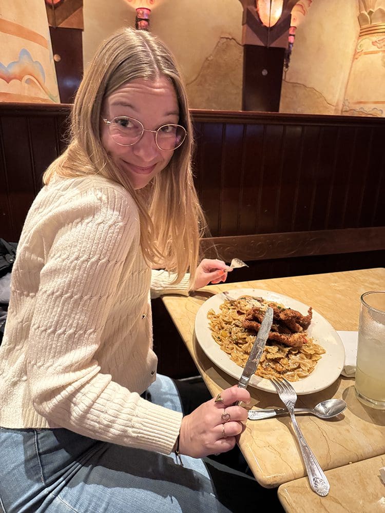 Monica en Levi (de zoon van Joey) kwamen bij ons voor het avondeten. We hebben bij The Cheesecake Factory gegeten.