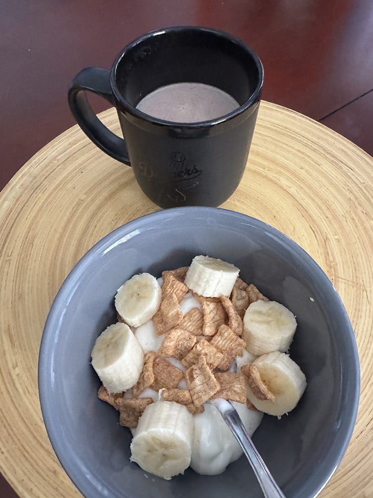 Vrijdag (7 maart). Een gezond ontbijtje, soort van haha.