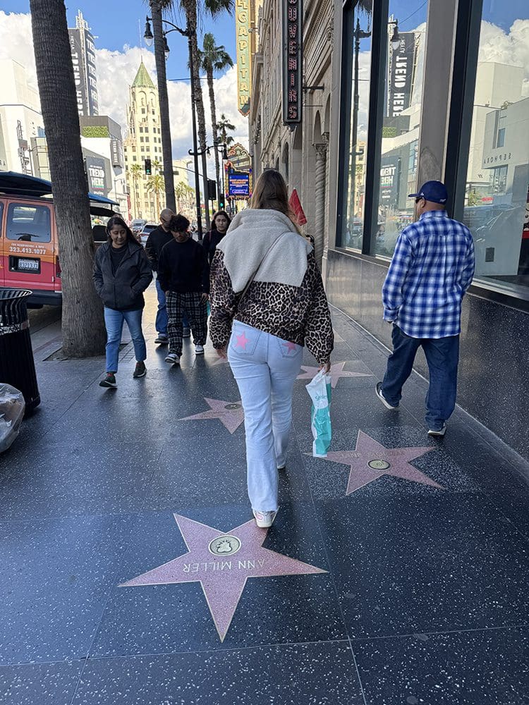Mijn broek matcht met de sterren op de grond.