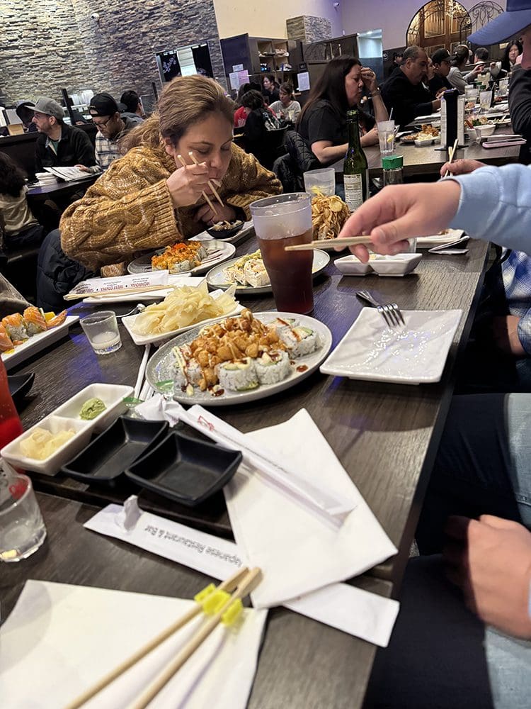 De sushi stukken zijn hier wel wat groter dan in NL.