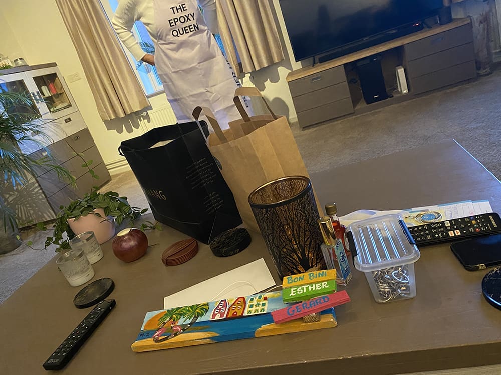 Toen begon de shoot voor onze webshop. Kettingen en ringen fotograferen. Dit was mijn uitzicht, haha.