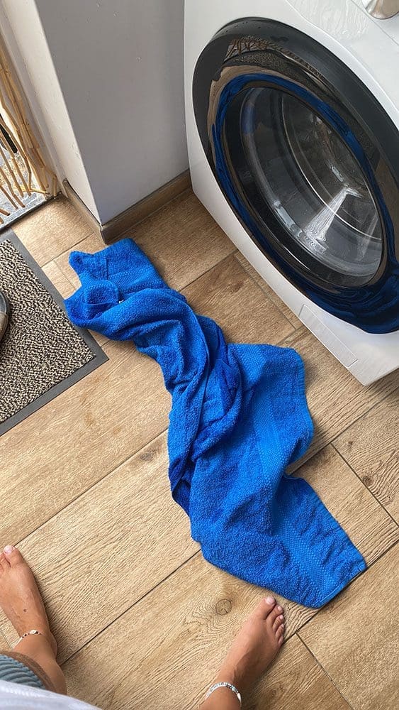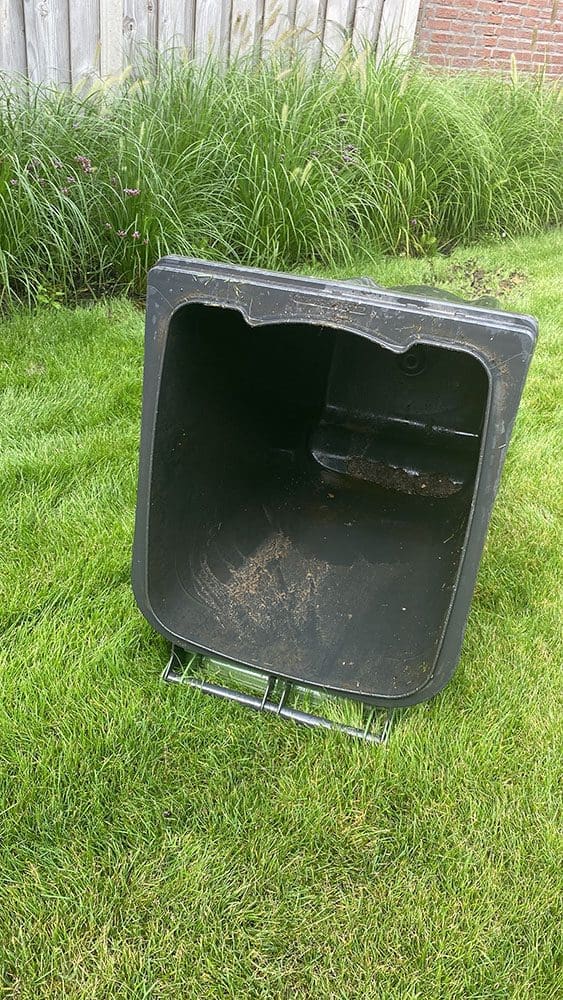 Deze mevrouw dacht vervolgens heldhaftig de groene container schoon te spuiten. Blijkbaar lekte een rubbertje en hoppa: ik creëerde een groot zwembad…