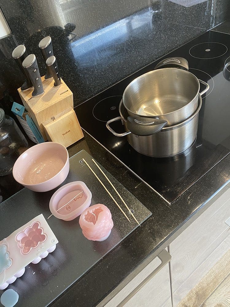 Dinsdag (16 augustus). De vakantie van Thijs zat erop. Rianne kwam die dag langs. We hebben een dag kaarsen en zeepjes maken voor Heppy op de planning staan.