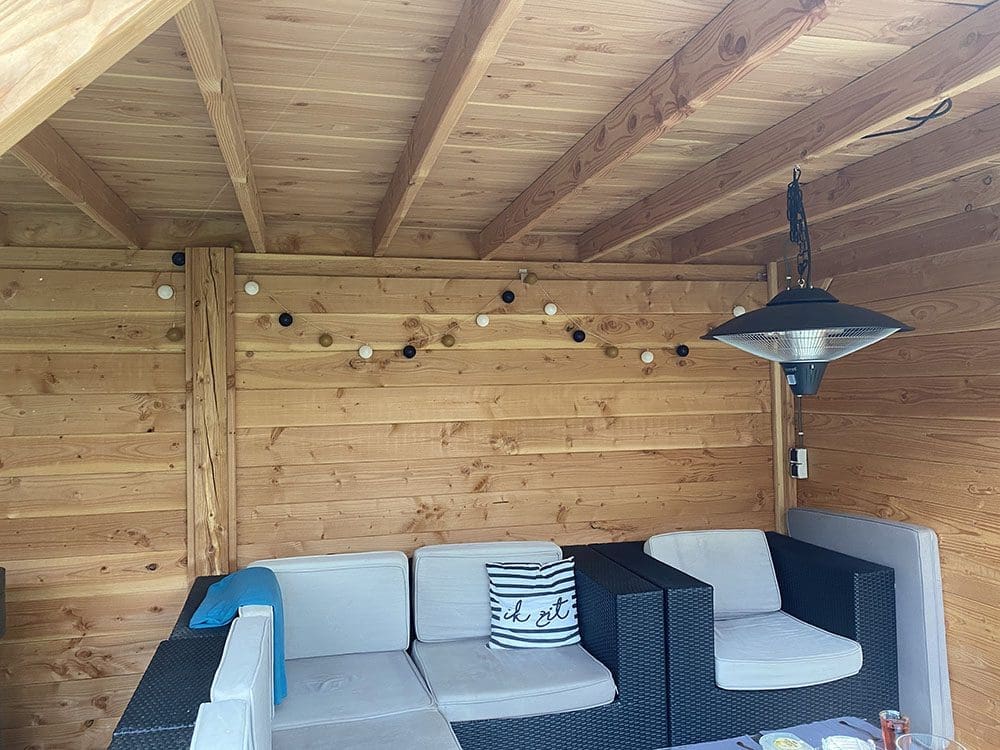 De lampjes uit de boom toch maar in de overkapping gehangen. Staat toch leuker?! Denk dat ik nog een slinger voor de andere kant wil…. oops.