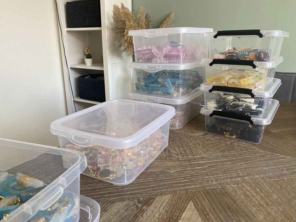 En vooral veel epoxy. Dat liep super goed. De onderzetters en lettersleutelhangers waren in trek.