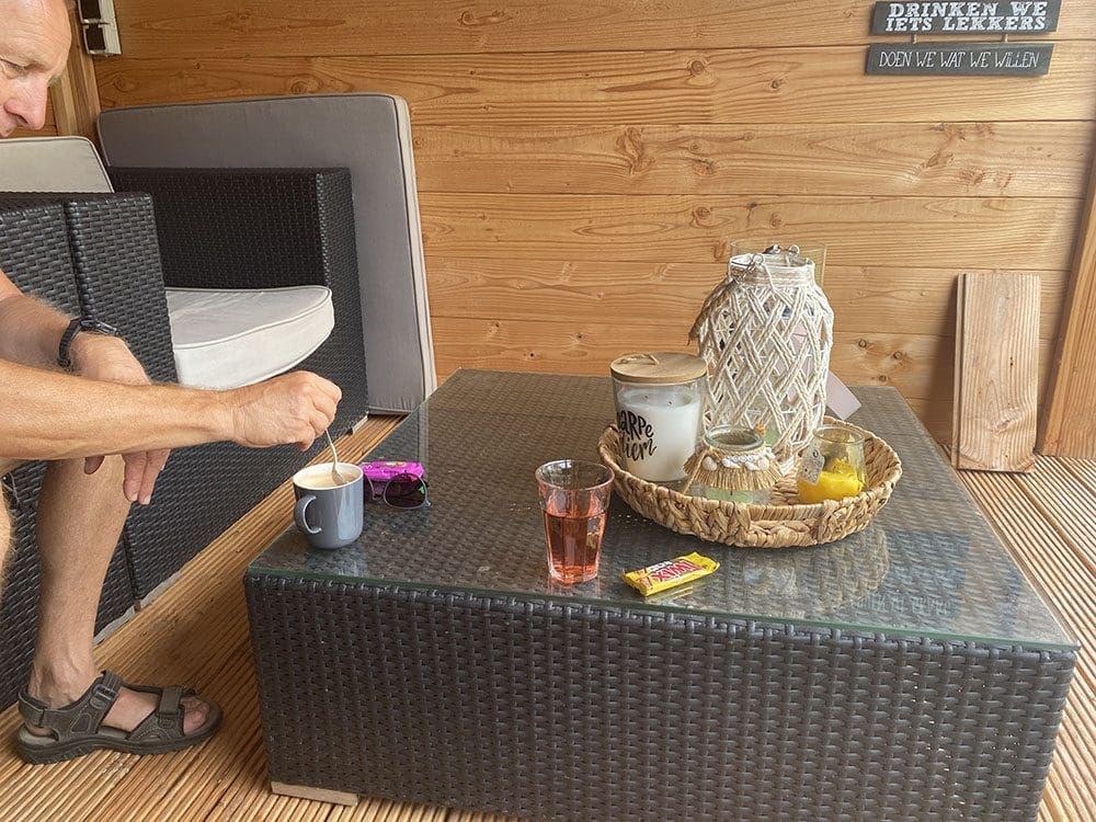 Eerst bij Theo koffie drinken. Handig een schoonvader die in ‘s-Heerenberg woont. Theo heeft tijdens de markt ook onze lunch verzorgd, super lief.
